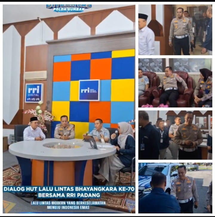 SUMBAR | Ruang siaran RRI Padang di Jalan Jenderal Sudirman, Selasa (24/9/2025), menjadi saksi hadirnya jajaran Direktorat Lalu Lintas Polda Sumatera Barat dalam sebuah dialog khusus memperingati HUT ke-70 Lalu Lintas Bhayangkara.