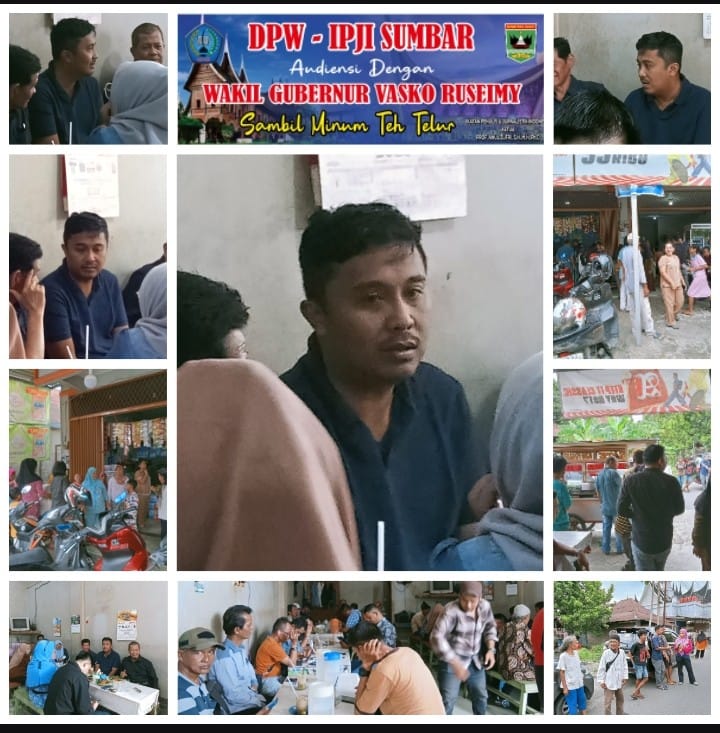 Audiensi DPW IPJI Sumbar bersama Wakil Gubernur Vasko Ruseimy di Warung Teh Telur Piril, Jalan Alang Laweh, menjadi simbol kedekatan pejabat publik dengan masyarakat dan jurnalis.