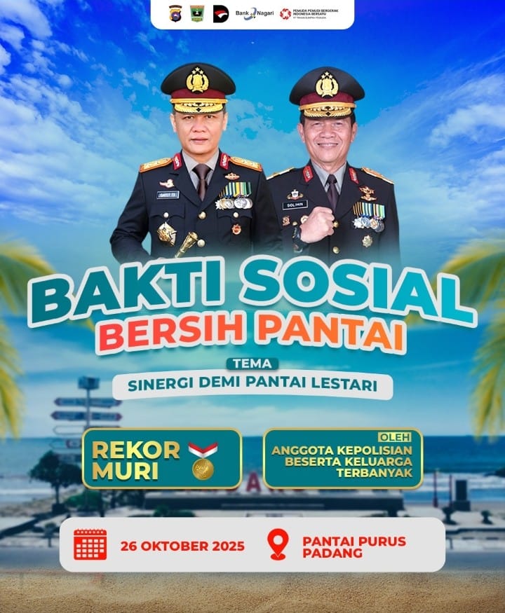 SUMBAR | Kepolisian Daerah Sumatera Barat (Polda Sumbar) tengah bersiap menggelar kegiatan akbar bertajuk Bakti Sosial Bersih Pantai yang akan berlangsung Minggu, 26 Oktober 2025 di Pantai Purus, Kota Padang.