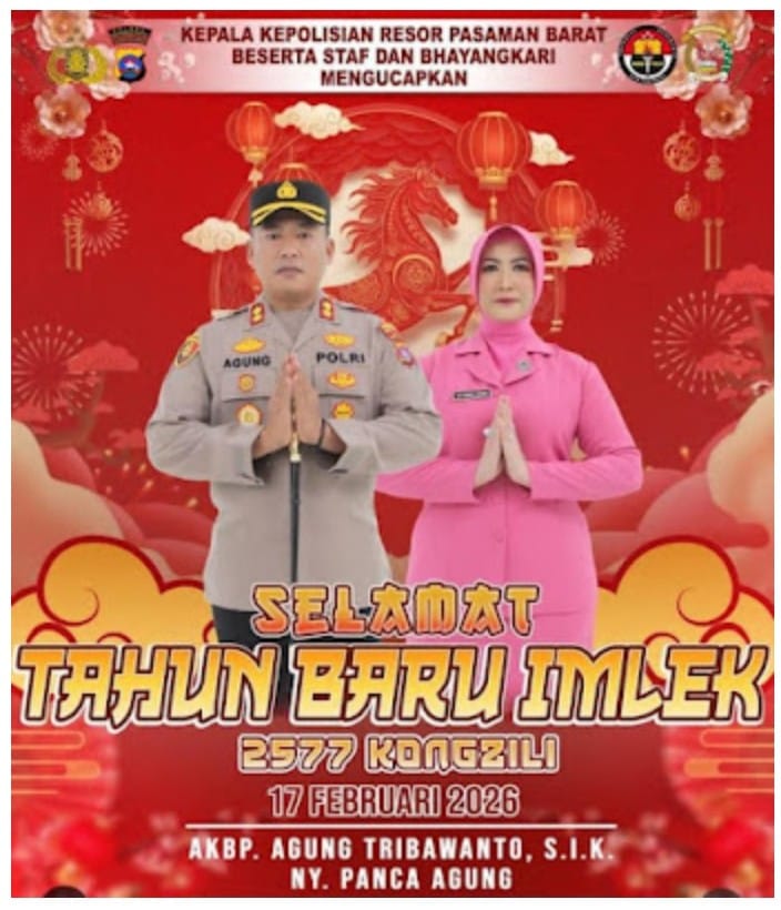 PASAMAN BARAT | Nuansa merah dan emas mulai menghiasi sejumlah sudut permukiman warga Tionghoa di Pasaman Barat. Lentera-lentera kecil tergantung rapi, doa-doa dipanjatkan, dan harapan baru disematkan menyambut Tahun Baru Imlek 2577 Kongzili yang jatuh pada 17 Februari 2026. Di tengah suasana penuh makna itu, Kepala Kepolisian Resor Pasaman Barat, AKBP Agung Tribawanto, S.I.K., hadir menyampaikan ucapan selamat sekaligus pesan kebersamaan bagi seluruh masyarakat.