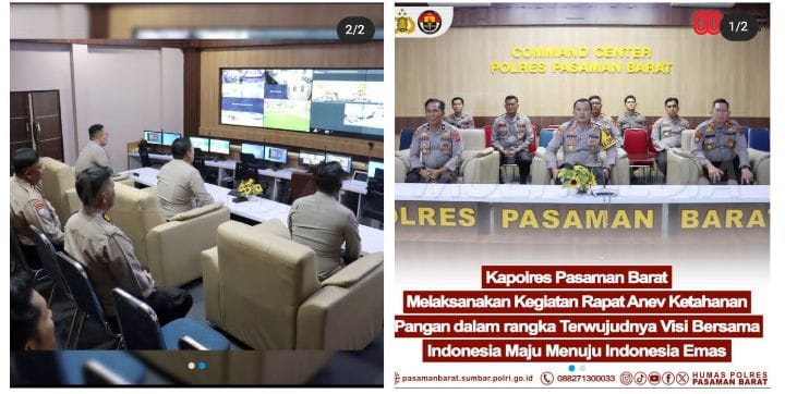 PASAMAN BARAT | Suasana Command Center Polres Pasaman Barat tampak penuh konsentrasi ketika Kapolres Pasaman Barat AKBP Agung Tribawanto, S.I.K. memimpin langsung rapat analisa dan evaluasi (anev) ketahanan pangan bersama jajaran. Layar-layar besar yang menampilkan data dan situasi lapangan menjadi latar keseriusan rapat strategis tersebut.