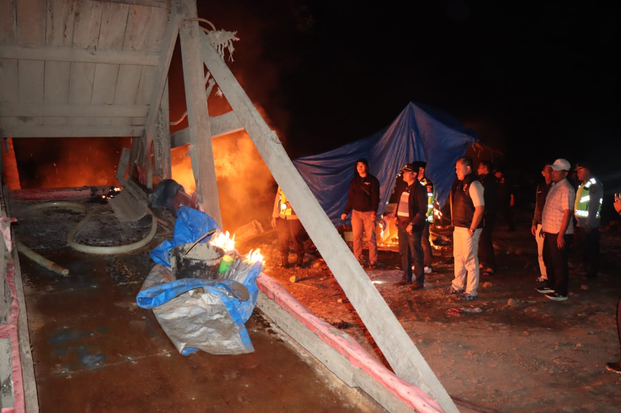 Dalam operasi itu, personel gabungan melakukan pembongkaran serta pemusnahan terhadap sejumlah fasilitas penambangan yang ditemukan di lokasi. Api terlihat membakar beberapa peralatan yang selama ini digunakan untuk aktivitas tambang liar sebagai bentuk penindakan tegas aparat.