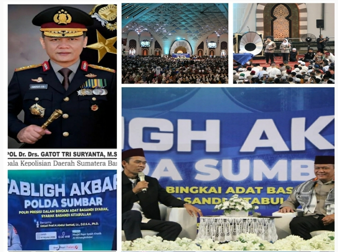Catatan Redaksi: Kegiatan Tabligh Akbar Ramadhan yang digelar Polda Sumbar bersama Ustadz Abdul Somad menjadi bagian dari pendekatan humanis Polri kepada masyarakat melalui kegiatan keagamaan yang memperkuat nilai moral, spiritual, serta kebersamaan dalam menjaga keamanan dan ketertiban di tengah masyarakat.