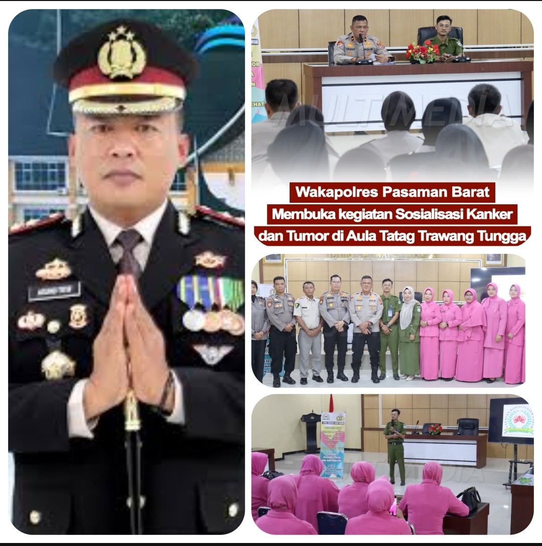 PASAMAN BARAT | Kegiatan sosialisasi kesehatan tentang kanker dan tumor yang digelar di Aula Tatag Trawang Tungga Polres Pasaman Barat menjadi momentum penting dalam meningkatkan kesadaran akan bahaya penyakit mematikan tersebut. Kegiatan ini berlangsung dengan penuh antusias, di bawah atensi langsung Kapolres Pasaman Barat AKBP Agung Tribawanto, S.I.K., yang dikenal memiliki kepedulian tinggi terhadap kesehatan personel dan keluarga besar Polri.