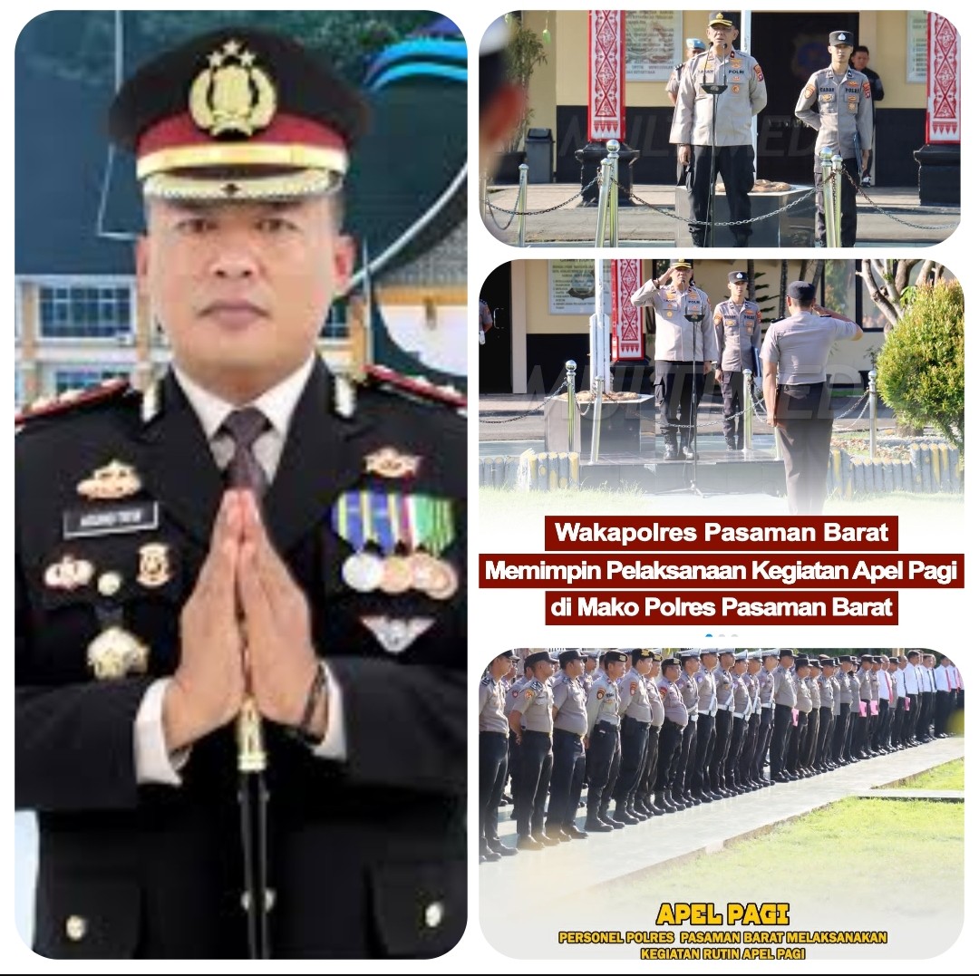 PASAMAN BARAT | Kegiatan apel pagi yang digelar di halaman Mako Polres Pasaman Barat berlangsung tertib dan penuh khidmat. Wakapolres tampil memimpin jalannya apel, sementara arah kebijakan dan penekanan tetap mencerminkan kepemimpinan Kapolres Pasaman Barat AKBP Agung Tribawanto, S.I.K., yang konsisten menanamkan disiplin di lingkungan kerja.